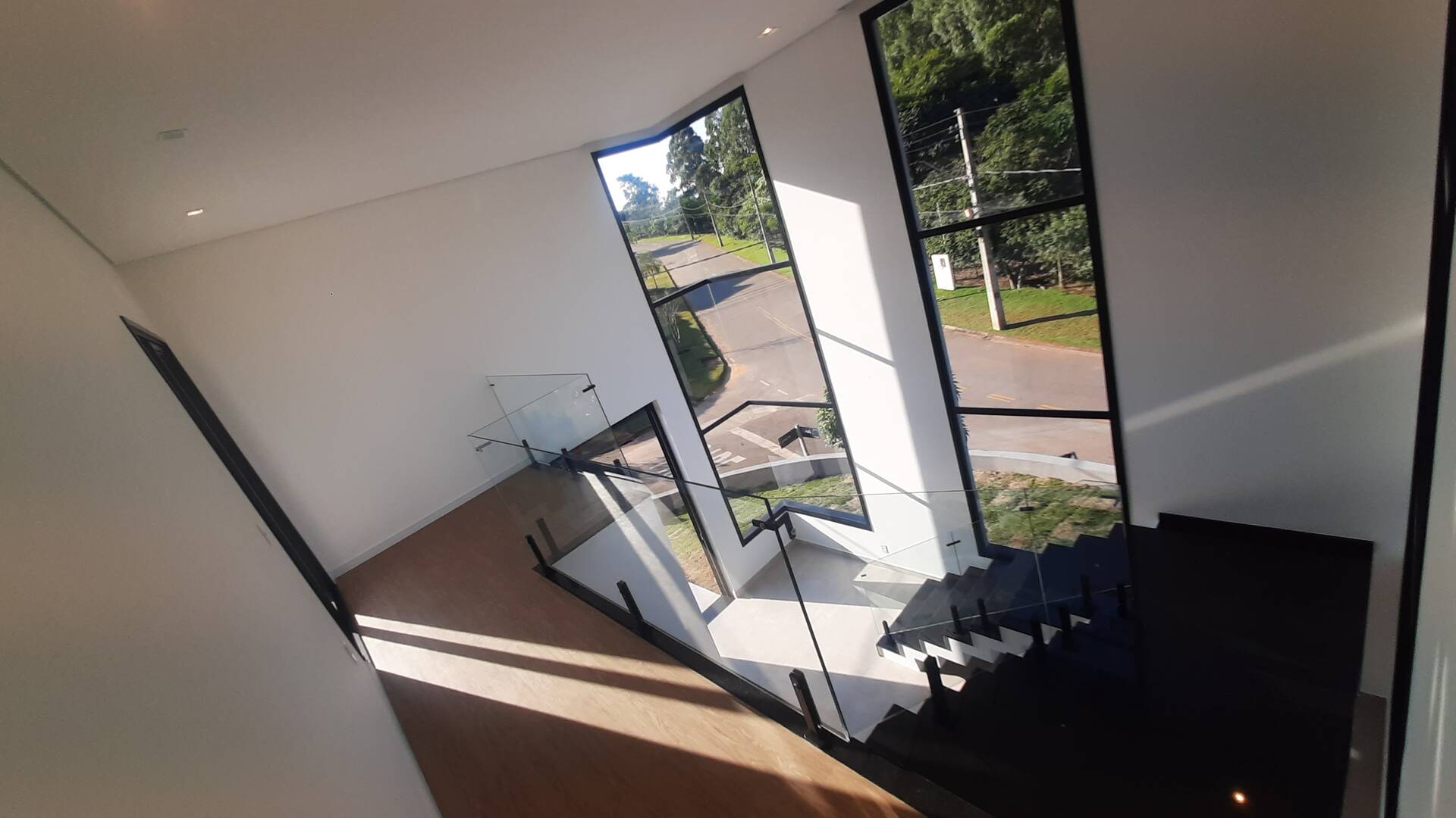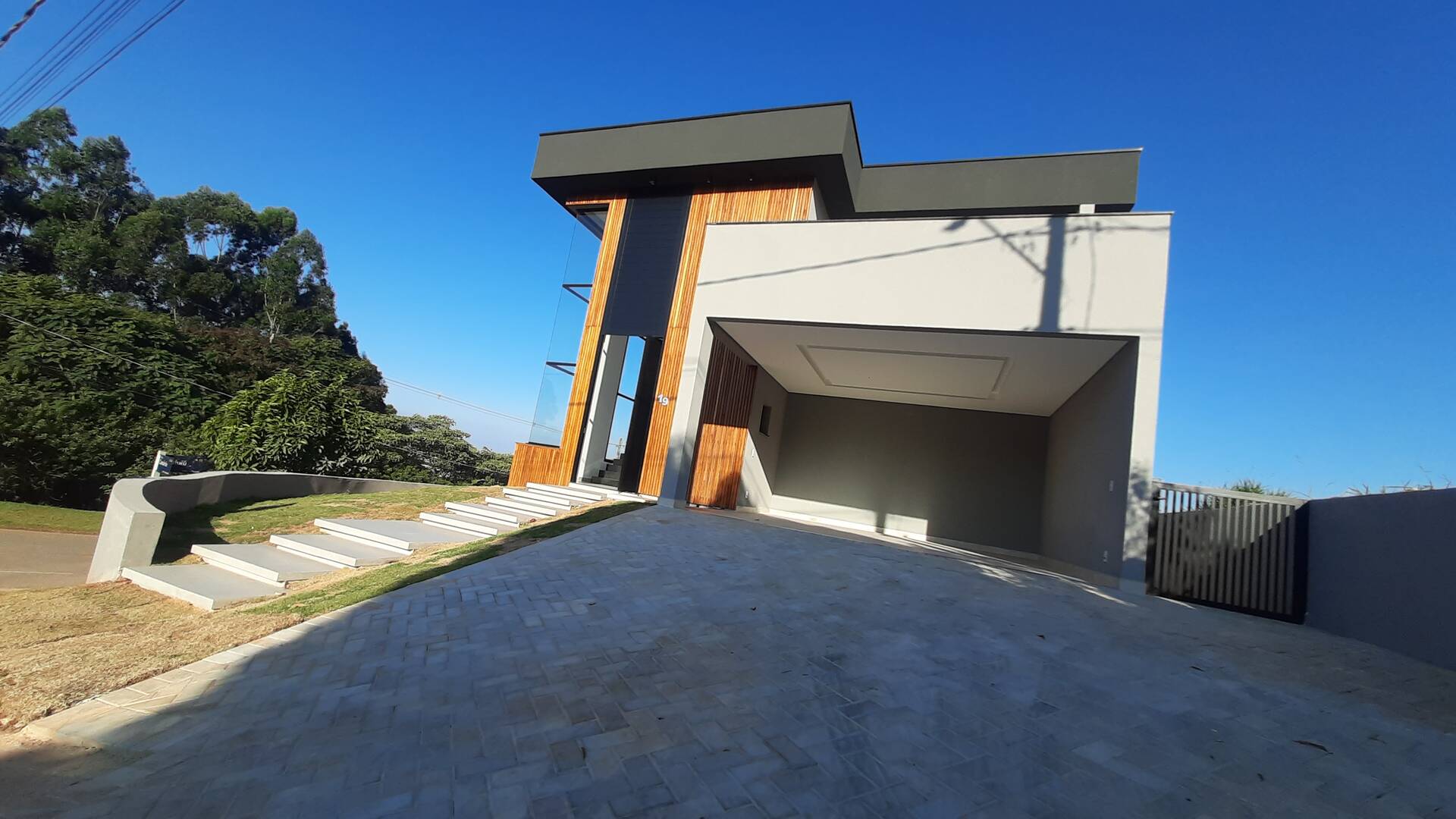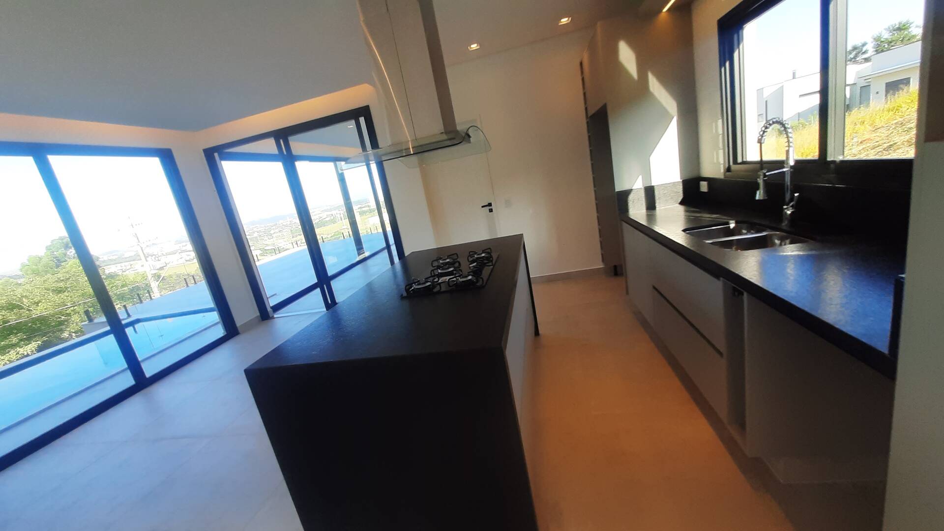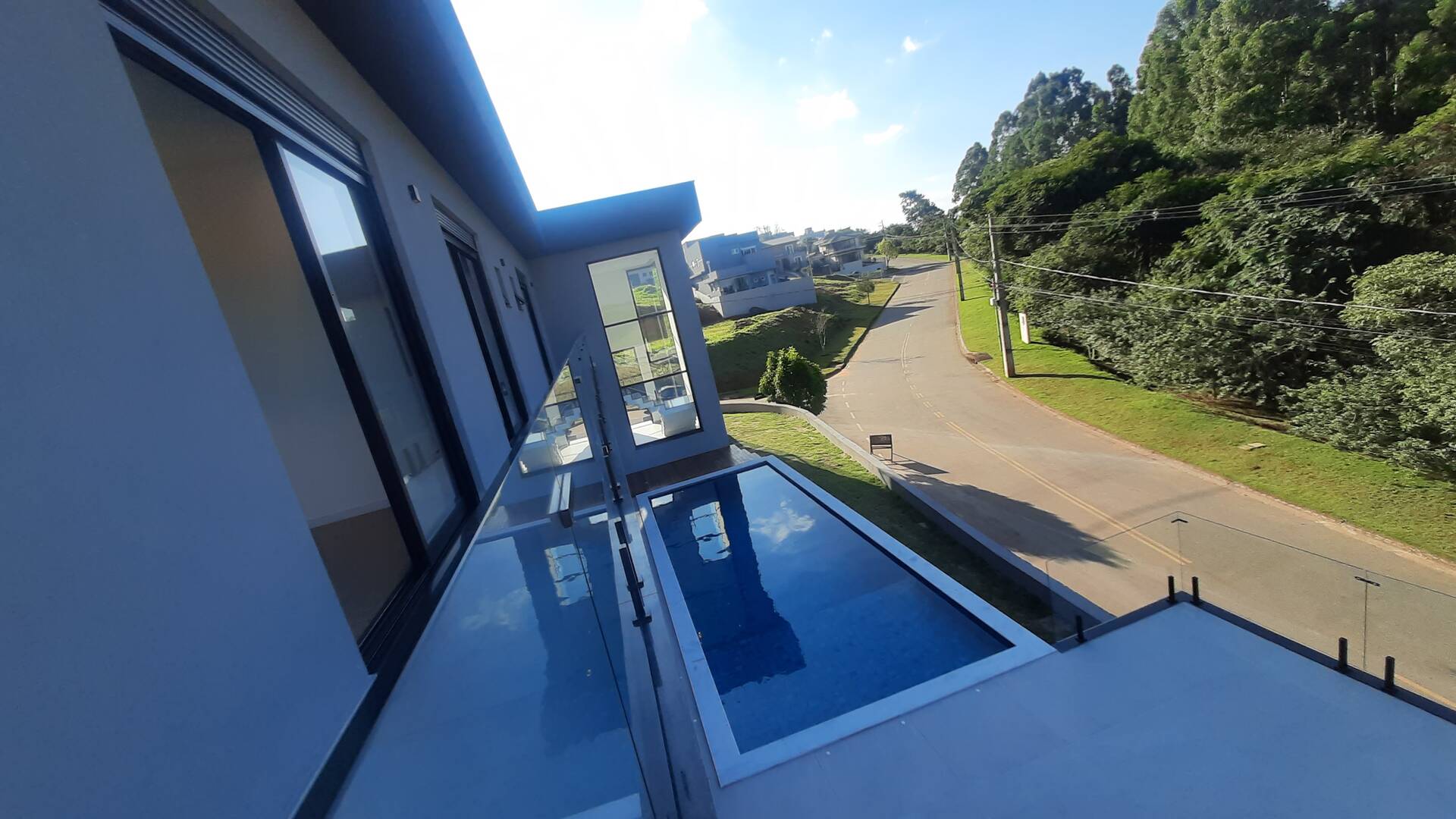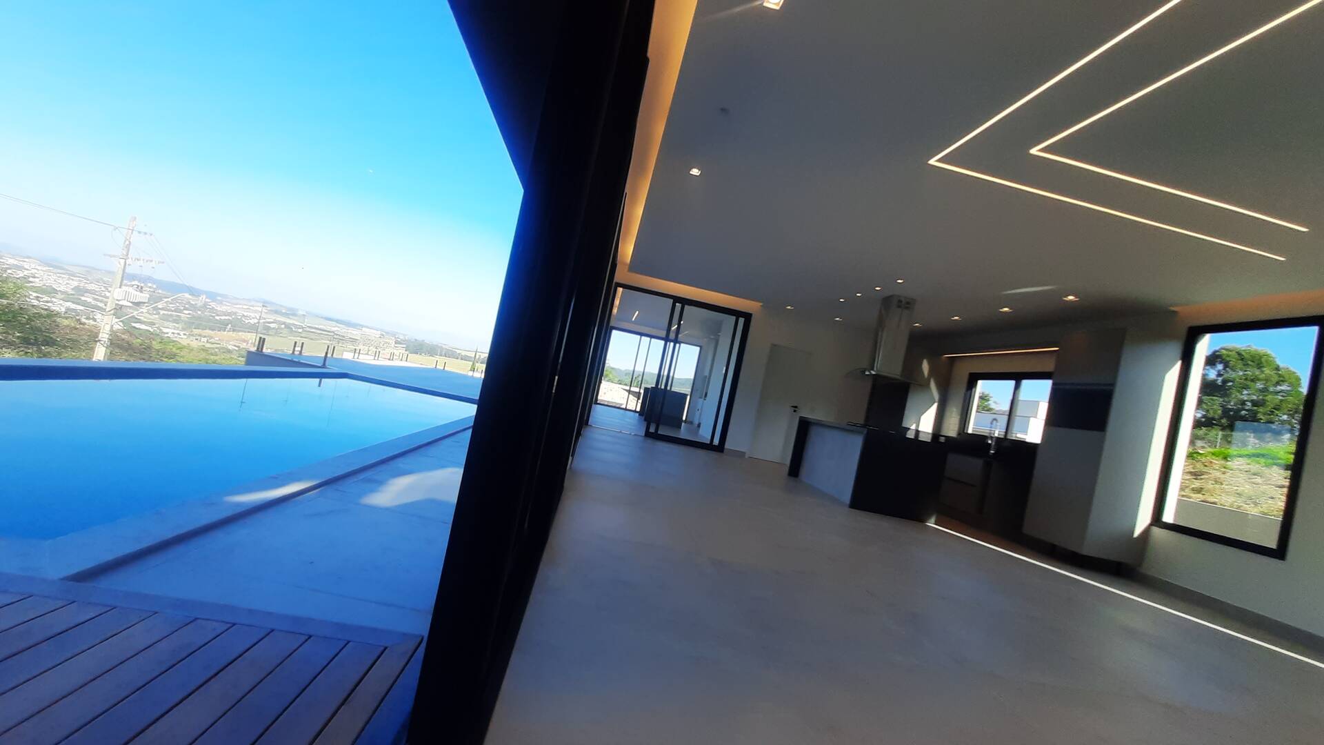 5 suítes, 2 vagas, sala de estar integrada à cozinha, área gourmet e um amplo deck com piscina. A casa conta com acabamentos de alta qualidade, como mármore São Gabriel e esquadrias automatizadas.